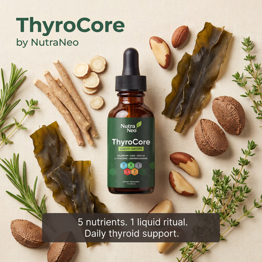 Fast-absorbing drops with Ashwagandha, Selenium, Zinc, Iodine, and L-Tyrosine to support metabolism, energy, and mental clarity daily.