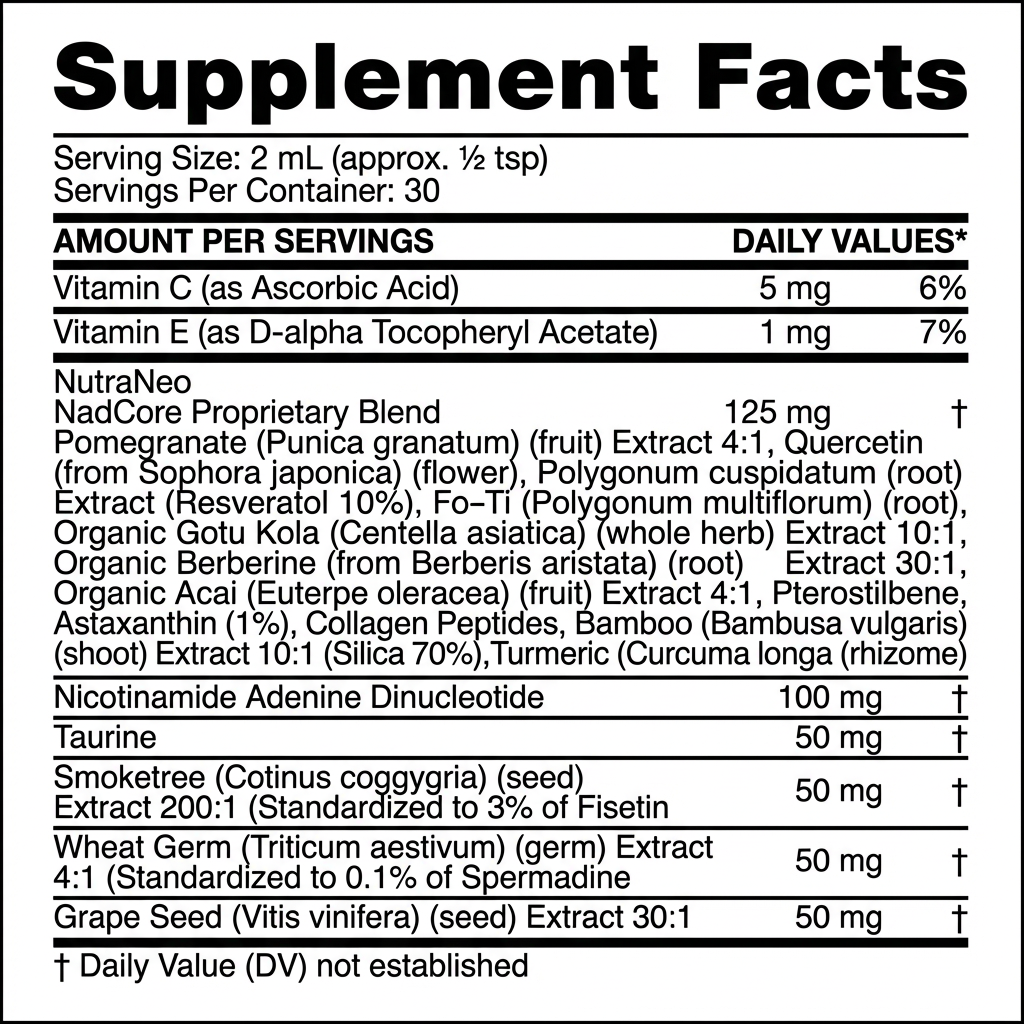 NADCore is a daily liquid supplement designed to support cellular energy, focus, and overall vitality. It helps replenish NAD+, a molecule your body naturally uses to produce energy and handle stress.
